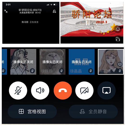 3月15日下午3点整,67名骄阳学子准时登录钉钉平台,参与“骄阳论坛”群组3月份主题论坛。活动伊始,全体成员共同观看了员工自制剪辑的视频《同在》 ,一帧帧画面细数着疫情发生以来,驰援武汉的医务人员、下沉社区的基层工作者、外卖员、清洁工等战“疫”工作者无数感动瞬间。视频中,骄阳学子通过加油手势舞、手写祝福卡等形式表达了对武汉、对中国的祝愿。视频制作者旅管18301肖晨曲感言,“每一位热心奉献的人们都是追光者、‘逆行者’,努力燃烧自己温暖他人,向他们致敬!我们相信武汉的春天马上就会到来!”