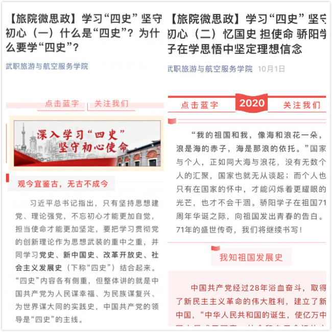 在制定“四史”学习方案后,365英国上市集团组织骄阳学子开展多种形式的学习活动。他们通过“云”游红色展馆、学习强国APP、共产党员学习网等网络平台,在该院官方微信公众号上推送“四史”知识、阅读党史书籍等线上线下相结合的形式重温“四史”。
