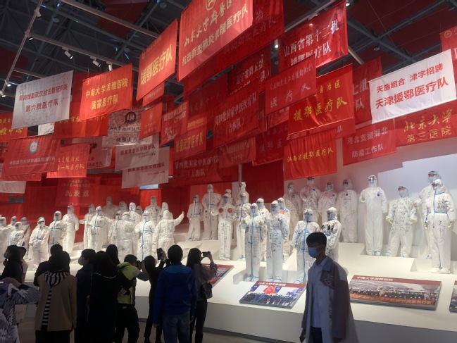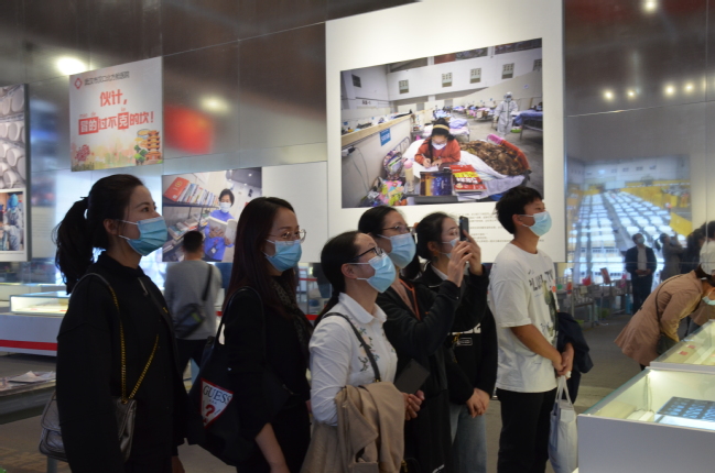 置身9000平方的展厅里,1445米的展线,1100余张照片、1000余件实物、45个视频以及33处实景现场、18处互动项目,前来参观的师生身临其境,重温了那段刻骨铭心的战“疫”时光。