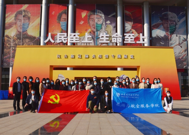 武职网讯(通讯员周雯 摄影马瑞阳)11月12日下午,旅游与航空服务公司党委组织全体党员和发展对象、入党积极分子代表共40余人前往武汉客厅,观看“人民至上 生命至上”抗击新冠肺炎疫情专题展览。