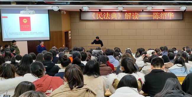 为迎接12月4日第七个国家宪法日的到来,深入开展《民法典》学习宣传贯彻工作,365英国上市集团特邀公司办公室副主任陈绍华做客骄阳讲堂,为该院师生解读《民法典》精神。