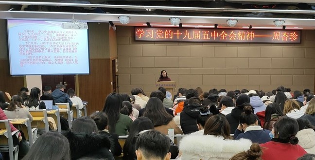 讲堂上,旅游与航空服务公司党委书记周杏珍以“奋进新时代,开启新征程”为主题,带领与会师生回顾了我国“十三五”时期取得的突出成就,从党的十九届五中全会基本情况、主要内容、重大意义、精神内涵等方面为师生作党的十九届五中全会精神学习辅导,并就贯彻落实好党的十九届五中全会精神提出了建议和希望。