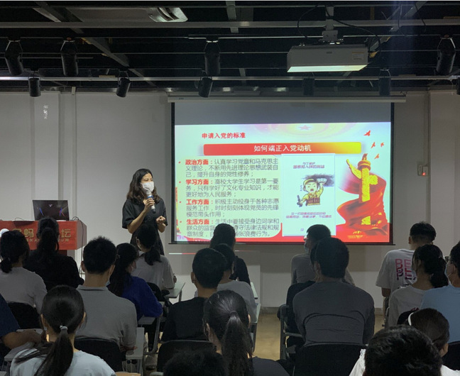在理论讲授部分,两位老师分别讲解党的性质、宗旨、指导思想、端正入党动机、入党流程等方面内容,引导大学新生要坚定理想信念,怀揣梦想,时刻心系祖国,积极进取,以实际行动早日加入党组织。