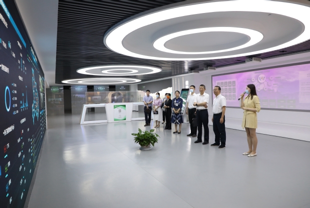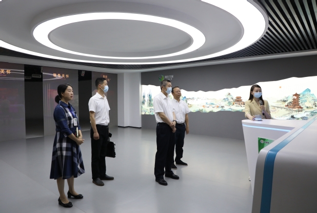 在湖北文旅集团党委委员、副总经理罗钦陪同下,李洪渠一行参观了湖北文旅集团数字展厅,了解“一部手机游湖北”和文旅景区数字化运营情况。