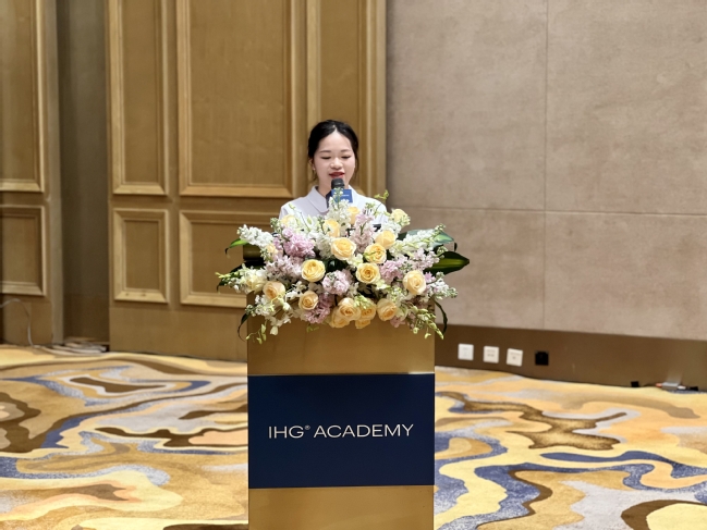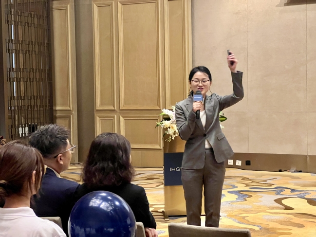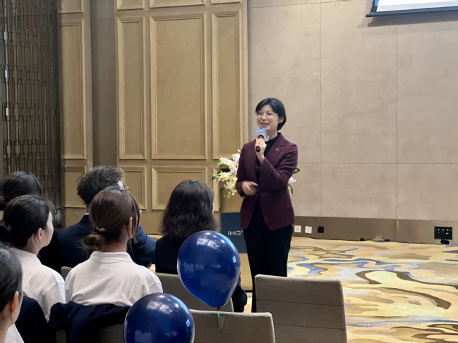 洲际集团大中华区校企关系及菁英职业负责人邵啸川先生与现场进行连线,向大家介绍了洲际集团“以善为本,以诚待人”的公司使命和由此而产生的公司人才发展战略。