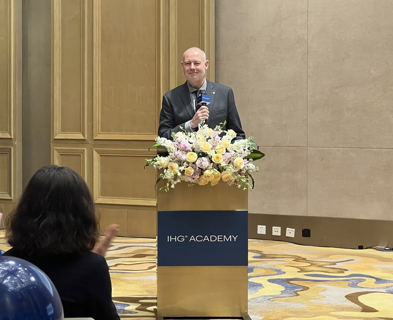 武汉洲际酒店总经理Mark先生欢迎各位老师及英才班同学的到来,期许同学们在洲际英才项目的培育下,带着新希望,踏上新征程,为自己的人生之路谱写新的篇章。