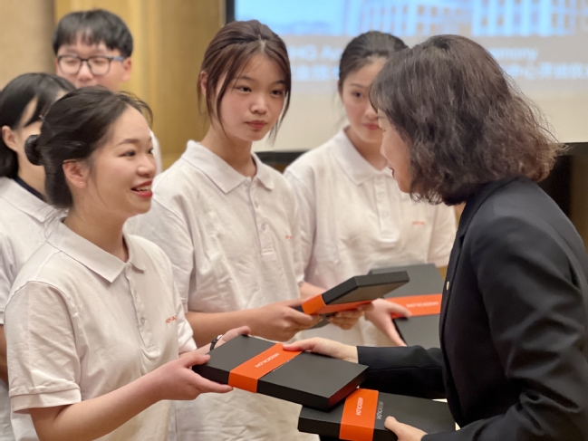 最后,在开班仪式上,每位同学都获得一枚由洲际酒店集团授予的专属徽章,这将鼓励着所有英才班的学子们珍惜时间,努力学习,直面挑战,勇往直前。