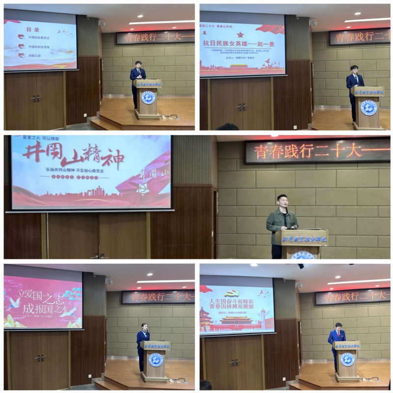 员工代表李进龙以“学习二十大重要精神,争做新时代有志青年”为主题,描摹了方志敏、赵一曼、钱学森等不同时代仁人志士在民族复兴、国家发展进程中的奋斗身影,讲述了每一个普通人如建筑工人、青年农民、外卖小哥的青春华章。他说:“作为新时代青年员工,要党的二十大精神指引下,传承革命精神和优良传统,弘扬中华优秀文化,厚植爱国情怀,练就强国本领,努力成长为堪当民族复兴重任的时代新人。”