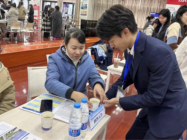 前来应聘的毕业生龚冰莹说:“参加本次校园双选会,可以直接获得心仪企业的面试机会,对社会就业形势有了更直观的认识,也能更发现自己的不足之处,以及努力方向。”