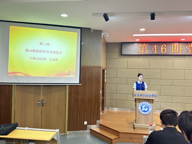 第44期党校学员代表吴龙惠用她的亲身经历以及感悟给新一期党校学员提出建议,“我们要学有所得、学有所获、学有所想,真正的把学到的东西运用到日常生活中去,立志做一名有理想、敢担当、能吃苦、肯奋斗的新时代好青年。”