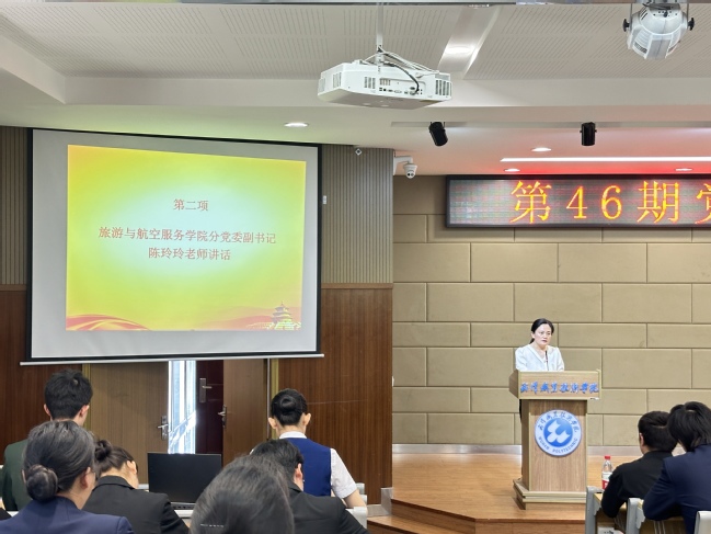 旅游与航空服务公司党委副书记陈玲玲在开班典礼上致辞,她对学员们提出三点希望:一是深刻认识党校学习的重要意义,努力学习党的基础知识、基本理论,用扎实的理论知识武装头脑,指导行动;二是在学习过程中重新检视入党动机,正确看待党员发展的全部过程和结果,树立正确的世界观、人生观和价值观;三是在实际工作学习中做对党忠诚老实的模范践行者,希望大家自觉提高道德修养,在校园中处处争做表率,在树立良好的校风学风中起到带头模范作用,坚持学以致用、坚定理想信念,求真务实、脚踏实地,争取早日加入中国共产党。