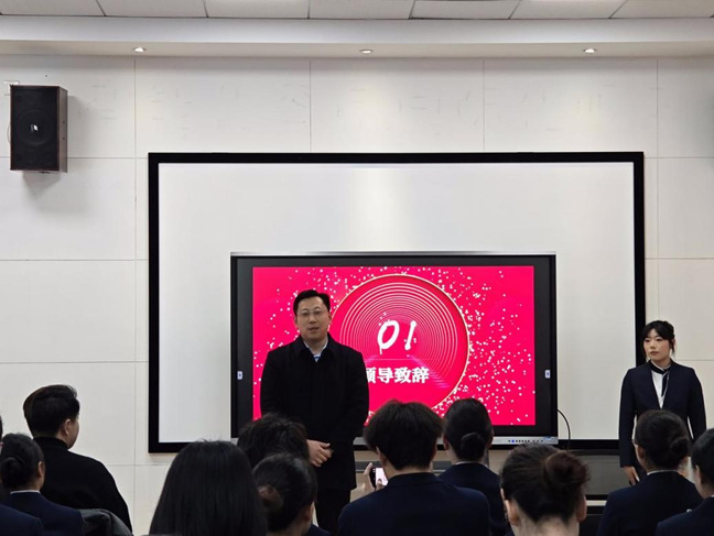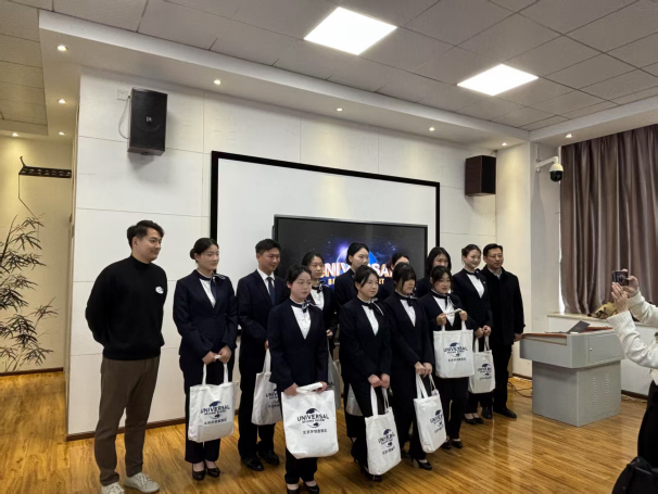 新闻网讯(通讯员 余磊 郭航 徐芃柯)2025年3月13日,由北京球环度假区与武汉职业技术公司合作举办的2024级旅游管理北京环球度假区人才储备班开班仪式(以下简称“环球人才储备班”)在逸云楼223教室进行开班典礼隆重举行,北京环球人才招聘副总监郭心炜,北京环球人才发展高级培训师张莉,365英国上市集团经理蒋永业、旅游管理专业教师余磊、辅导员郭航、徐芃柯和2024级“北京环球储备班”32名同学出席了本次开班仪式。