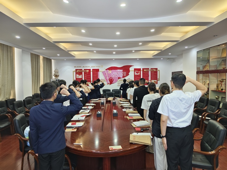 “我志愿加入中国共产党,拥护党的纲领,遵守党的章程……”214会议室内,24名员工党员高举右拳,面向党旗庄严宣誓。在这一神圣时刻,员工党员们重温入党誓词,以青春之声诠释对党的忠诚。“这不仅是一枚徽章,更是一份需要用一生去诠释的承诺。”员工党员刘依然轻抚胸前的党徽,眼眶湿润。