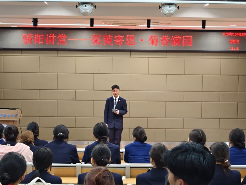 本次骄阳讲堂不仅深化了同学们对重阳文化的理解,也为大家指明了将传统文化与党员修养相结合的实践路径。愿全体预备党员与入党积极分子以青春之力传承文化根脉,以党员担当温暖身边长者,让“茱萸寄思·菊香满园”的美好愿景,成为服务群众、锤炼党性的生动写照。