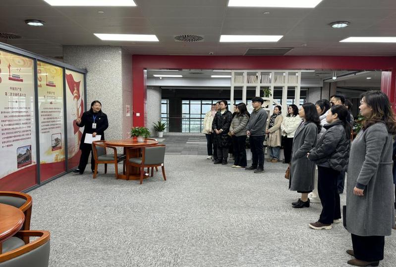 展厅内,一幅幅承载红色记忆的展窗吸引全体党员驻足。大家在讲解员的细致引导下,系统回顾了从中共一大到二十大的百年辉煌历程。随后,全体党员移步至廉政文化长廊与党纪学习教育专区,这里以文化人、以规正纪,将廉洁理念与纪律要求深度融合,引导党员干部进一步筑牢思想防线、强化纪律意识。