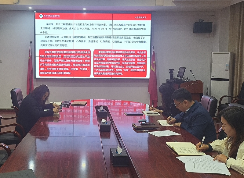 分党委书记谢丽传达了《长江工程职业技术公司黄志豪贪污厅招办公款犯罪案例》警示教育材料,并结合案例开展党风廉政专题教育。她强调,全公司党员干部要以案为鉴、警钟长鸣,深刻汲取教训,始终绷紧纪律之弦,筑牢拒腐防变的思想防线。各党支部要坚决扛起全面从严治党主体责任,把纪律教育和党性教育融入日常、抓在经常,持续营造风清气正的政治生态和育人环境。